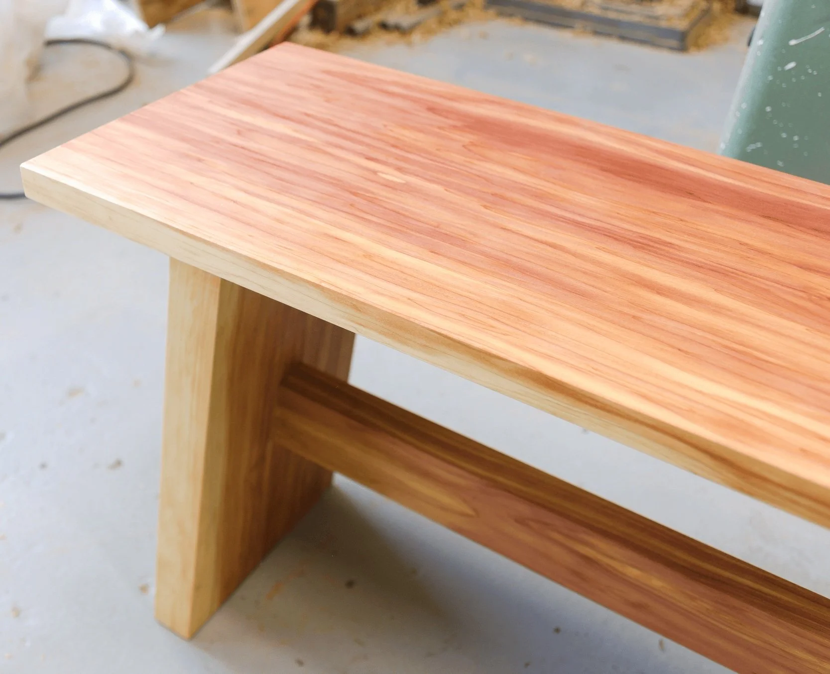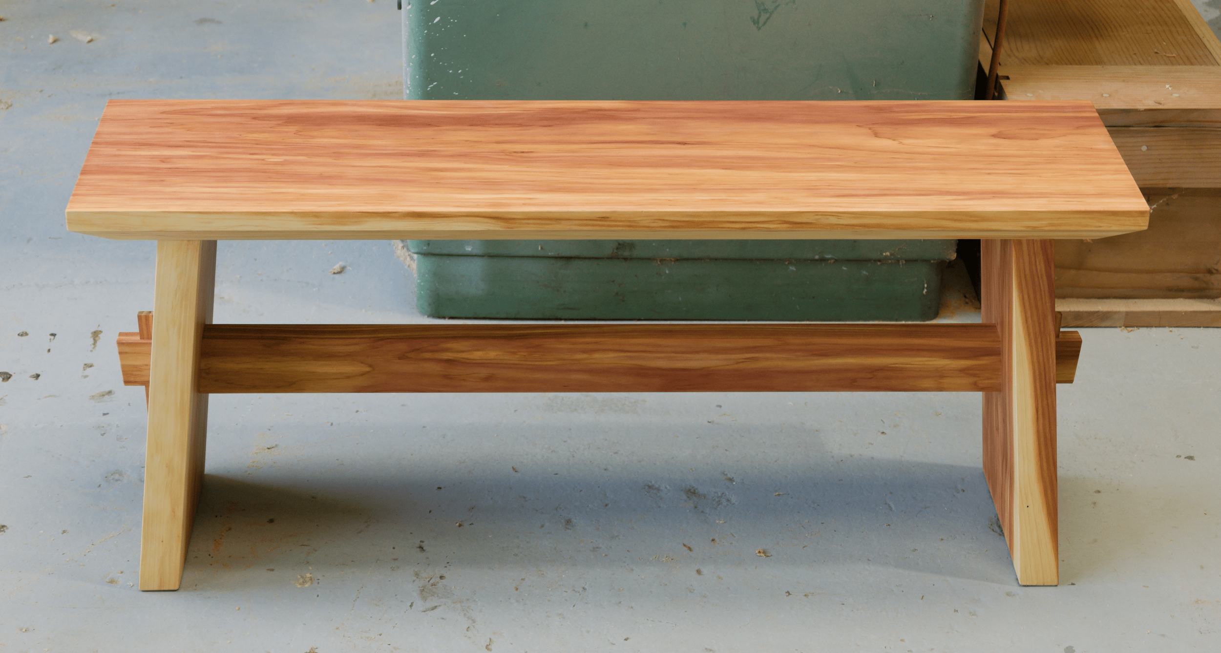 Taking cues from the iconic Tori gates of Japanese shrines and temples, this bench is comprised of graceful angles and subtle swells and bevels that pictures can not do justice. At home indoors or outdoors or even in a walk in shower, Eastern Cedar is a handsome wood that is nearly unparalleled in its insect and rot resistance.